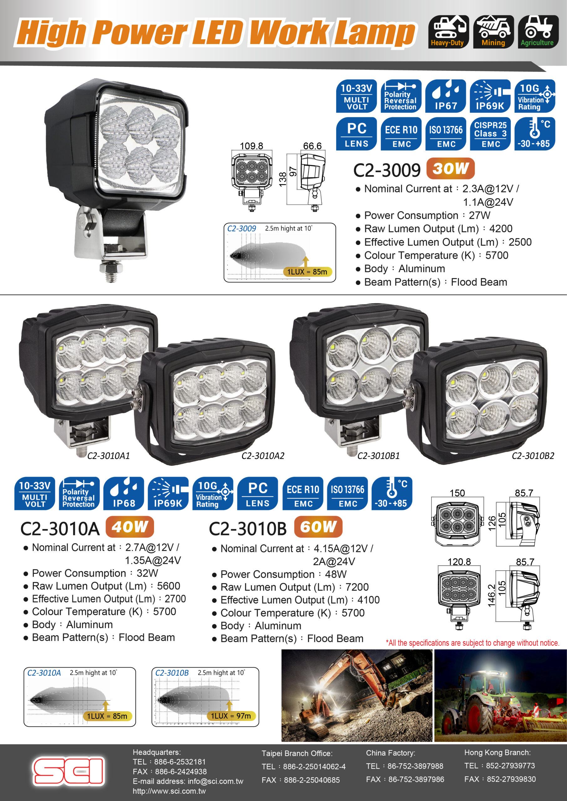 Square high power work light for agricultural machinery & construction machinery