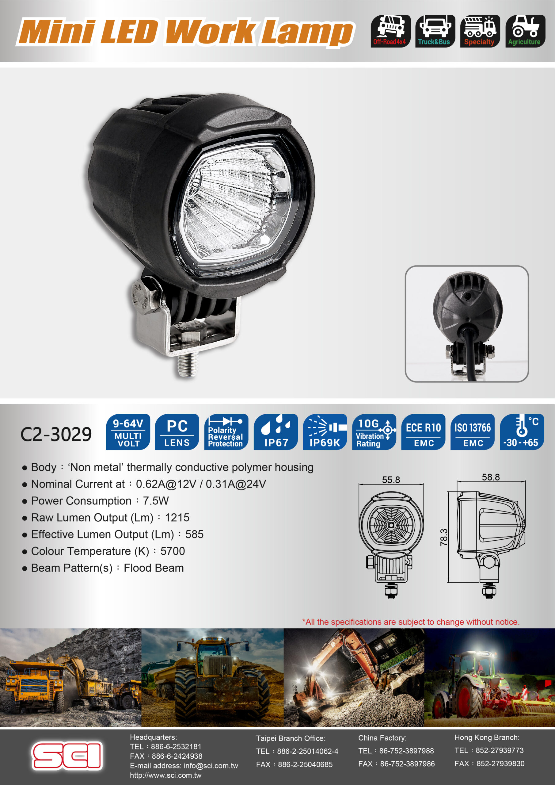 Applicable to auxiliary lighting on commercial vehicles, small construction machinery and agricultural machinery