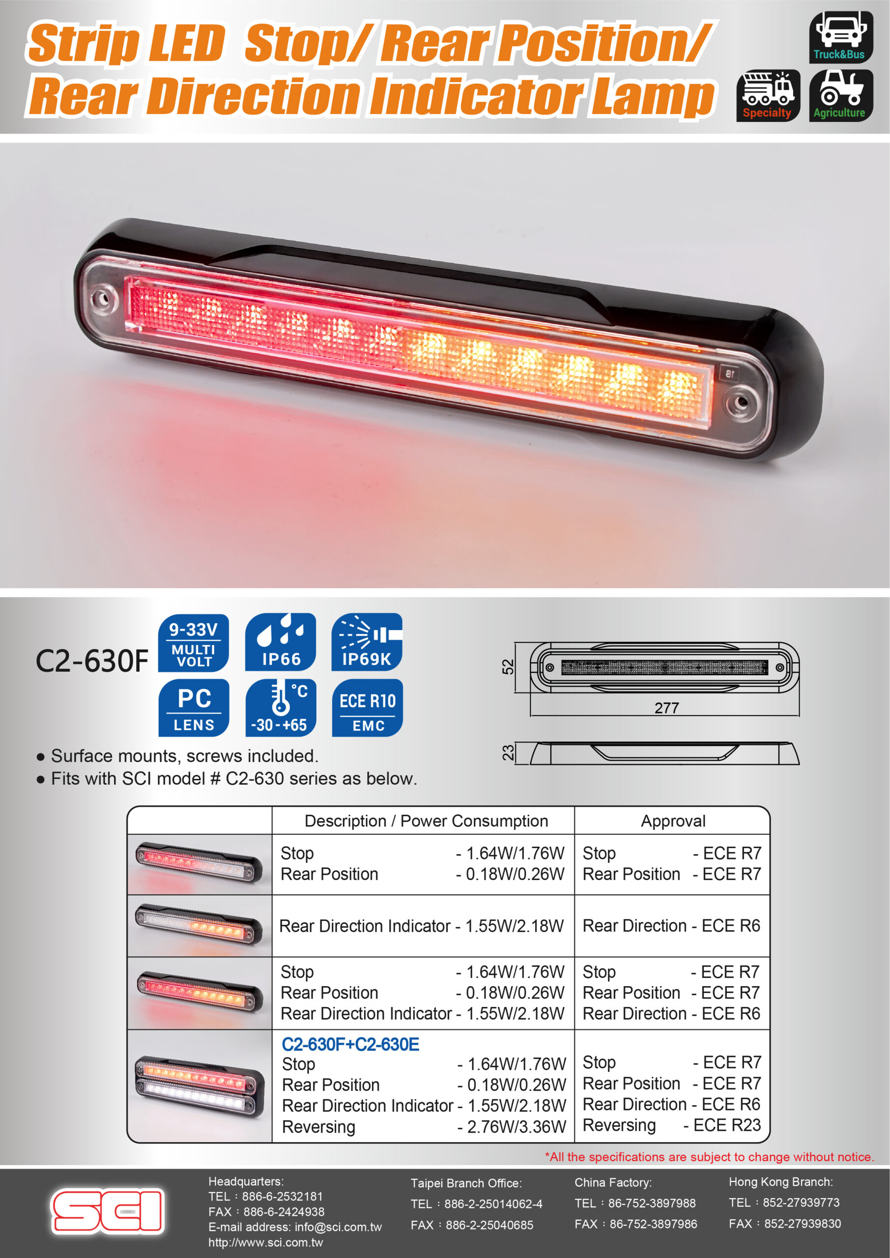 条型行煞/后方向条灯,具备平面安装和崁入式安装供选择可适用安装在露营车&商用车&BUS&农机具各种车辆上平面安装和崁入式安装供选择上盖选项: 金属(SUS 316) 或 ASA, 白/黑/香槟银/镀铬底座选项: ASA, 白/黑/香槟银/镀铬