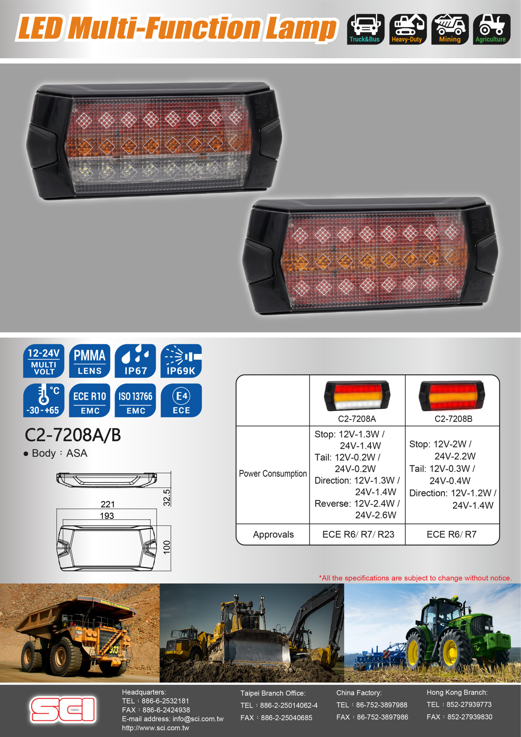 C2-7208A 小型组合式后行煞灯/后方向灯/倒车灯组(欧规)