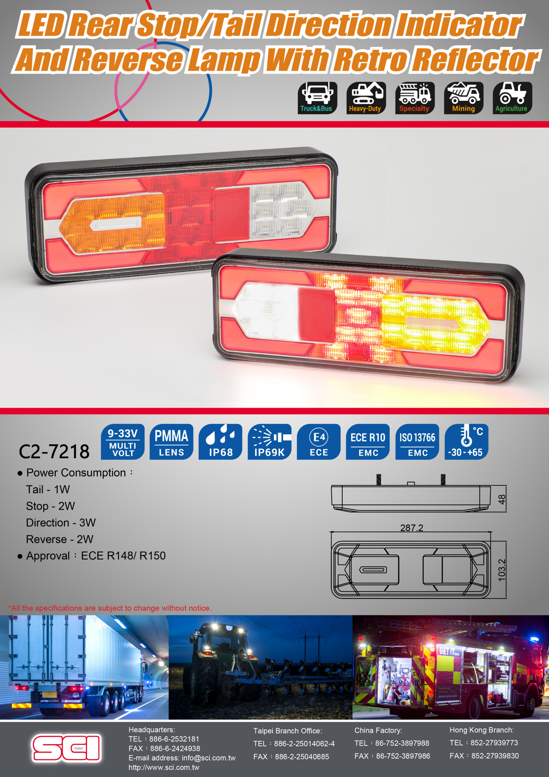 C2-7218 后方煞车灯/尾灯/方向灯/倒车灯组合灯,附反射片