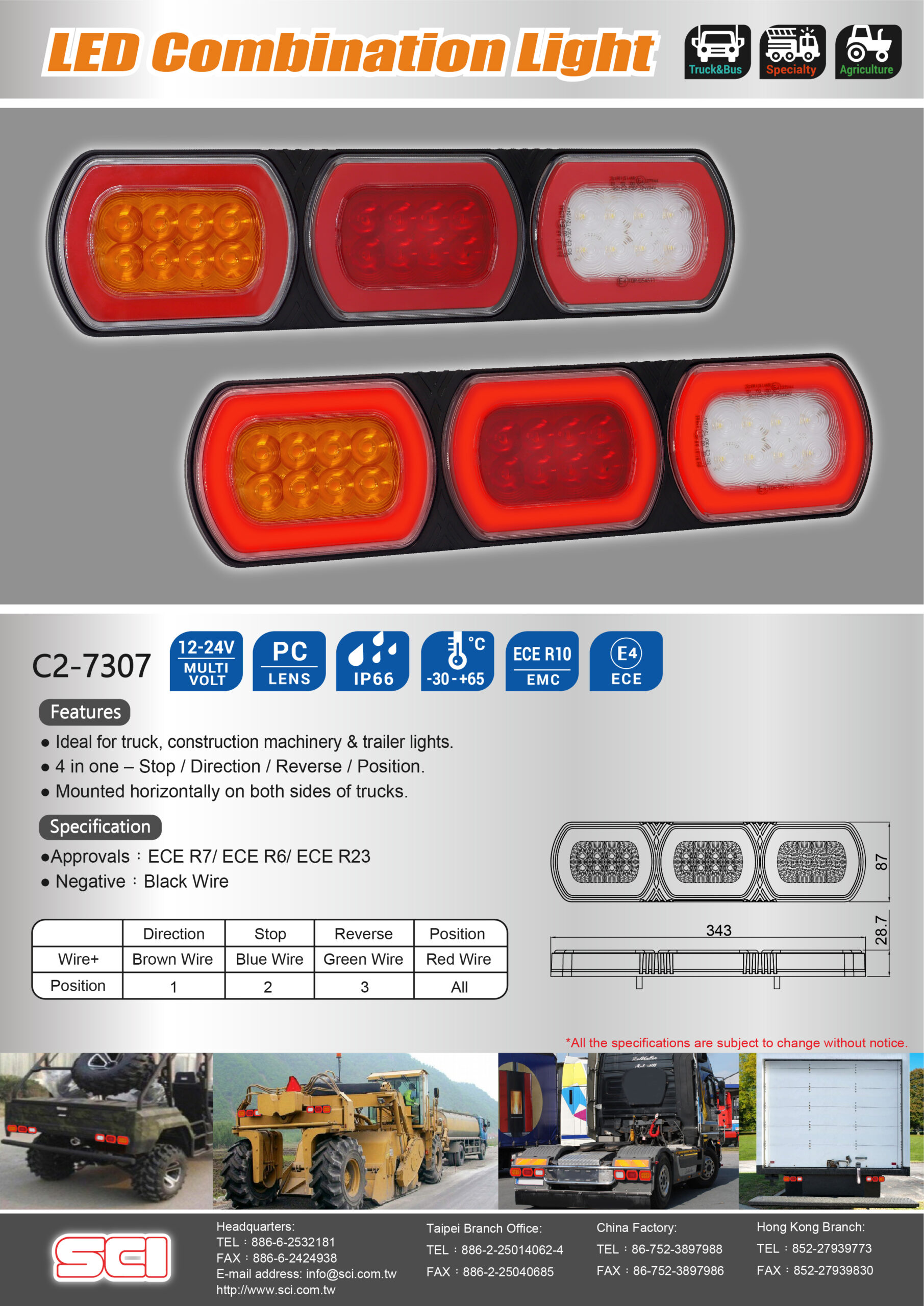 C2-7307 小型组合式后行煞灯 / 后方向灯 / 倒车灯组(欧规)