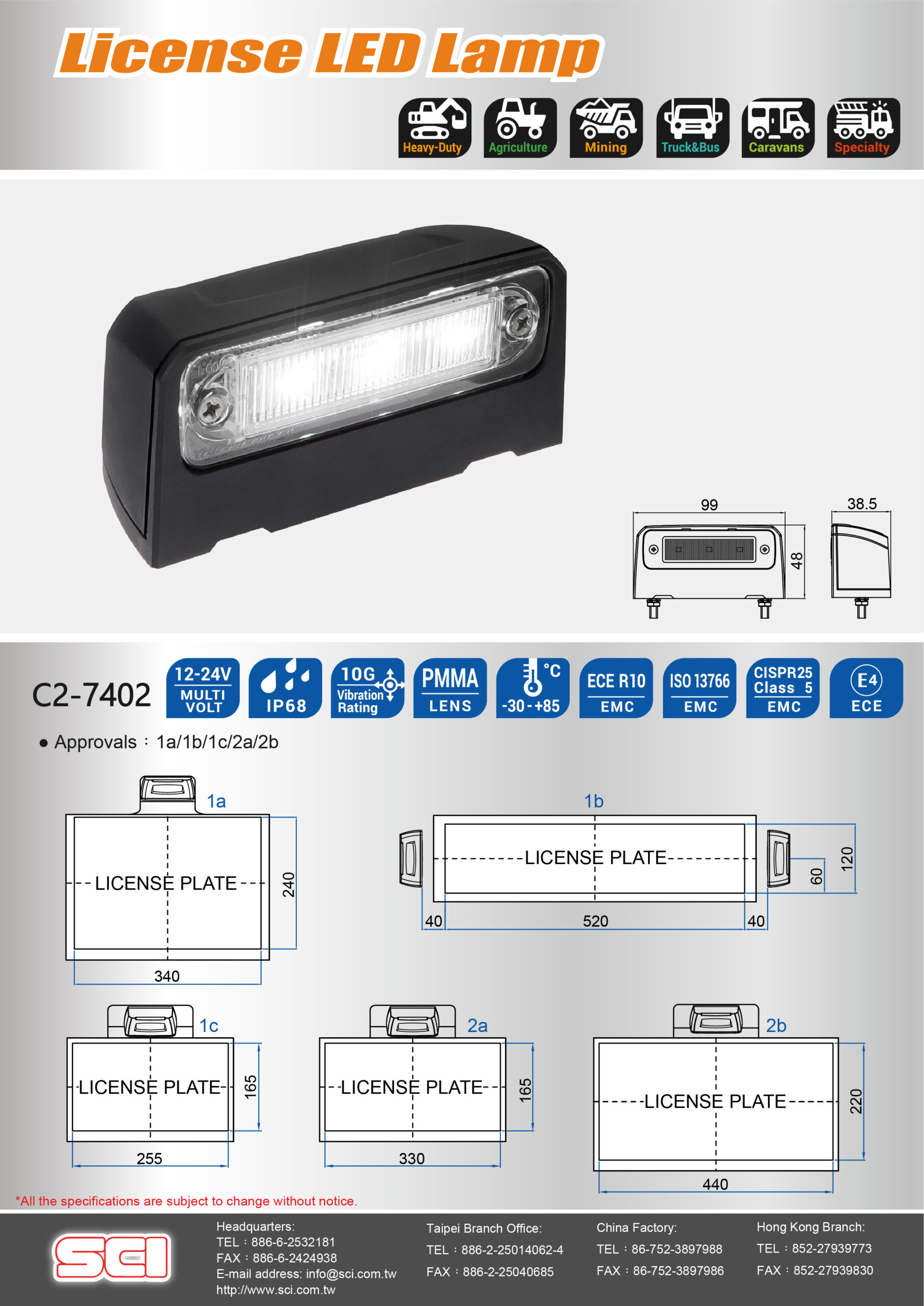 C2-7402 LED License Plate Illuminator Light (ECE)