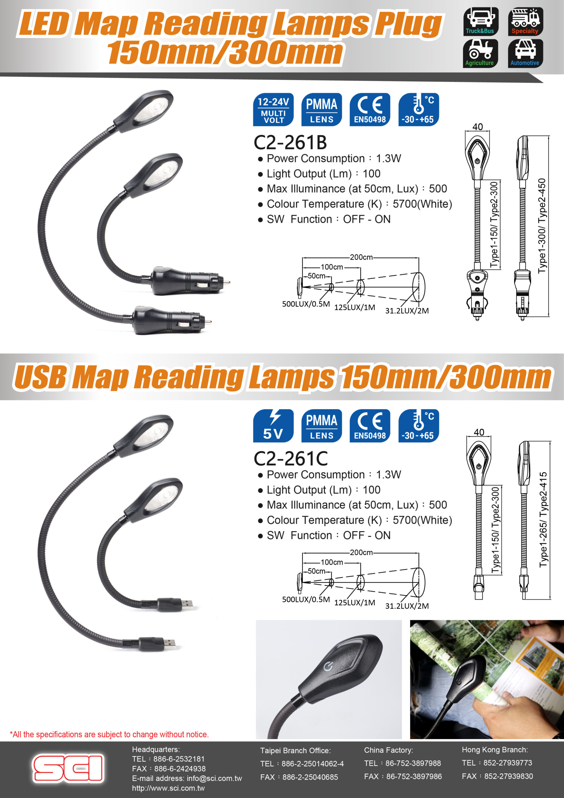 首頁 / 產品 / 車用室內&室外燈 / 車用室內 & 室外燈 / C2-261C USB LED Map Reading Lamps(150mm/300mm)